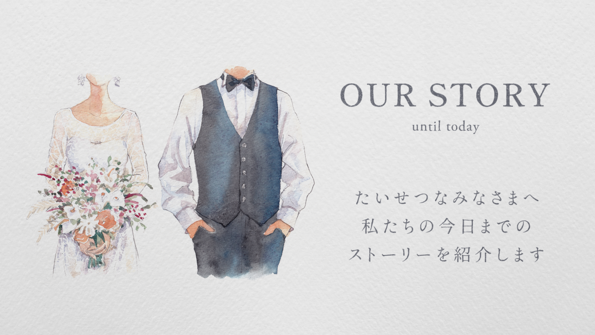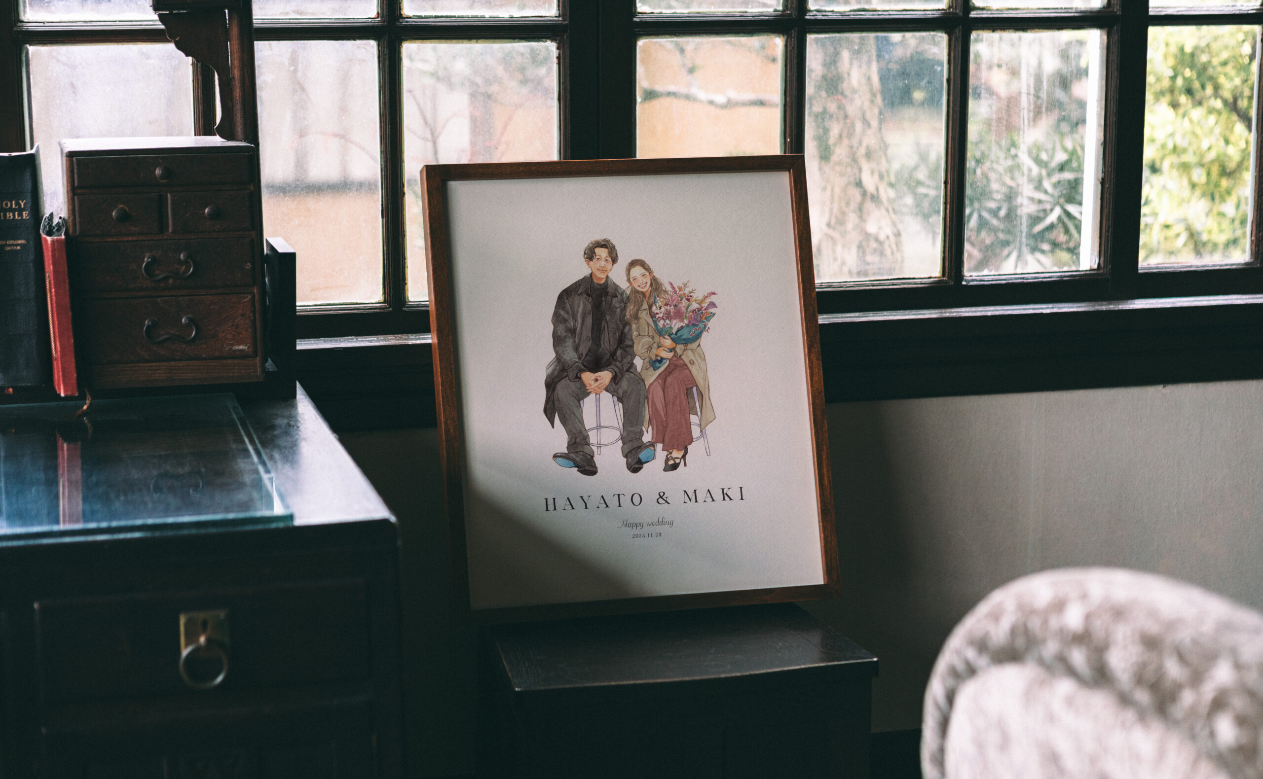 人気イラスト作家のフジエシュンスケ氏が1枚ずつ丁寧に手描きした水彩画がおふたりのストーリーを鮮やかに彩ります。